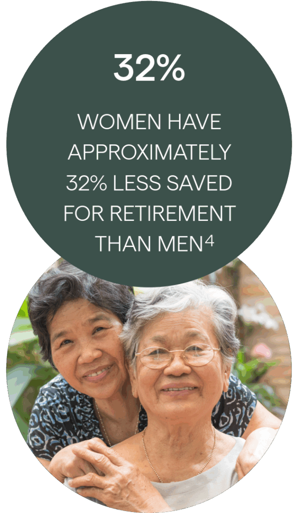 Women have approximately 32% less saved for retirement than men,4 reinforcing the idea of saving early and saving often.
