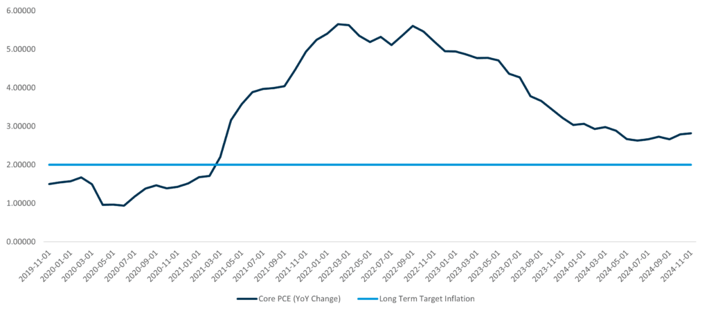 The US economy is at a critical juncture, marked by both promising fundamentals and uncertainty related to the new administration’s intended policies, which could have a significant impact on both inflation and economic growth. Investors, who do not like uncertainty, have not priced in these risks as evidenced by rich valuations in the capital markets.